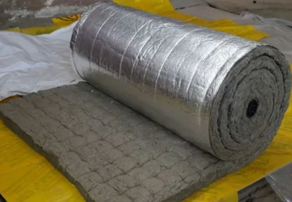 - Минеральная вата. Она доступна в рулонах и плитах, толщина которых составляет 5-10 см. Изоляция имеет алюминиевую пленку, что позволяет использовать ее в помещениях с высоким уровнем влажности, таких как бани или душевые.