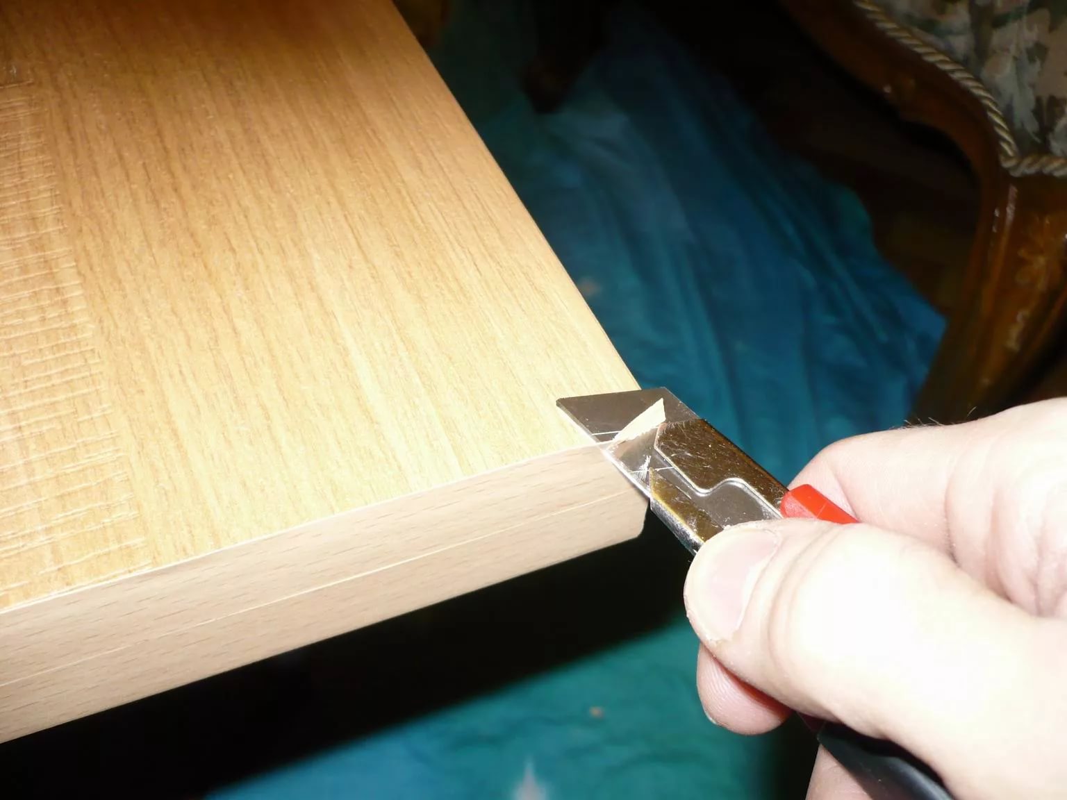 | Обработка углов (для П-образных/Г-образных столешниц) | Для внутренних углов: сделать V-образный вырез на кромке, чтобы она плотно прилегала. Для внешних углов: аккуратно обрезать кромку под углом 45 градусов с обеих сторон и состыковать. | Канцелярский нож, угольник, карандаш. |