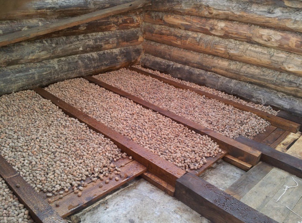 - Затем сверху размещается минеральная вата, а также засыпается керамзит — слишком толстый слой не допускается из-за увеличения нагрузки на потолок;