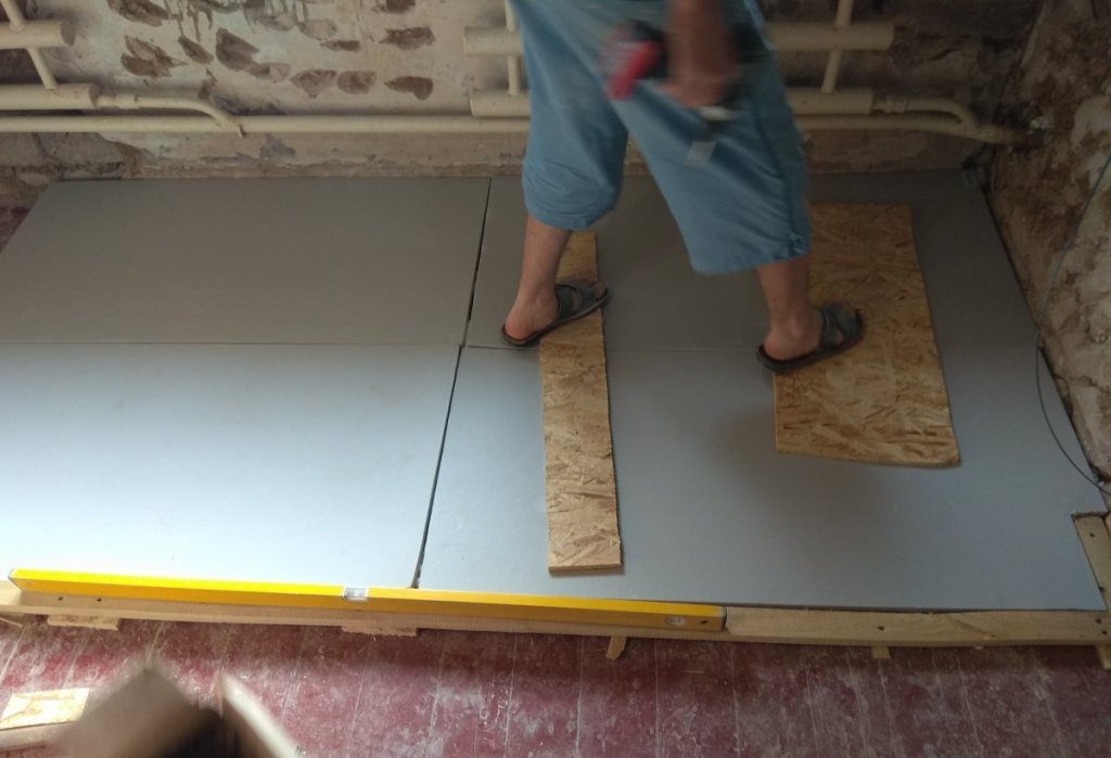 - Уложите чистовую доску, а при желании — линолеум.